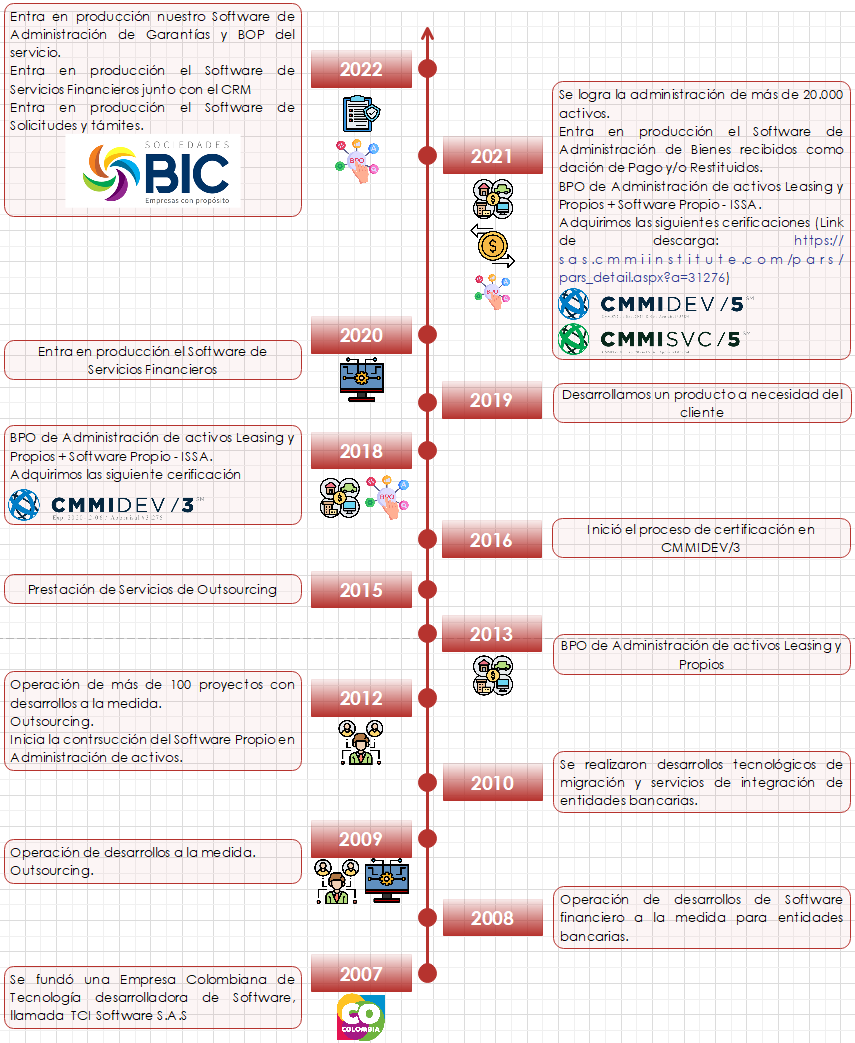 Somos una empresa colombiana de tecnología creada en el año 2007, dedicada al desarrollo de Software de productos propios con propósito y prestar los servicios BPO y KPO alrededor de estos.